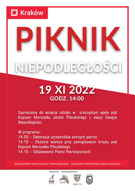Serdecznie zapraszamy do wspólnego uczczenia odzyskania niepodległości przez Polskę na uroczystym apelu pod Kopcem Marszałka Józefa Piłsudskiego.